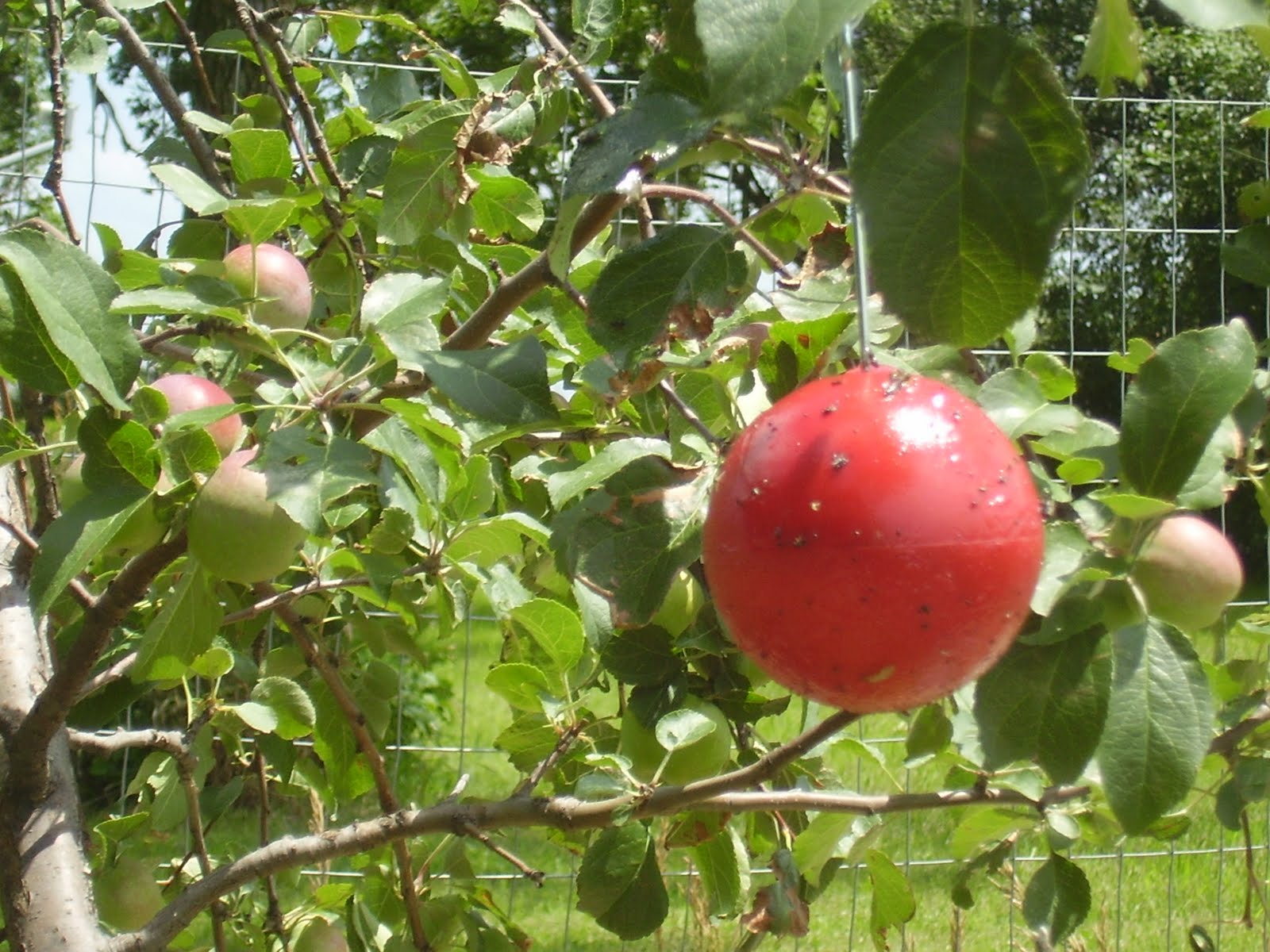 I hung a few apple maggot fly traps on my apple trees. So far I haven't seen any maggot flies, but I suspect we will get some.